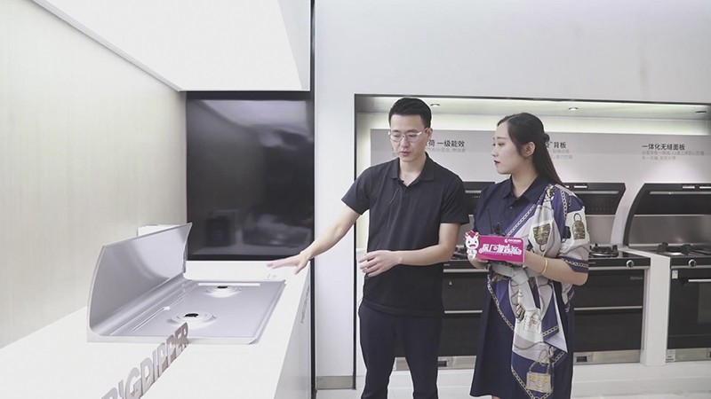 接著,在主播帶隊來到北斗星公司展廳,北斗星研究院張程祥院長為大家講解了北斗星家族產品標志性的創(chuàng)新特性——“天一無縫,就是好擦”的一體式無縫臺面,擦洗無死角,就是好清理!現場還演示了爆炒辣椒,油煙一秒吸凈,近距離也不嗆,更為直觀地向大家展示北斗星集成灶的完美使用性能。