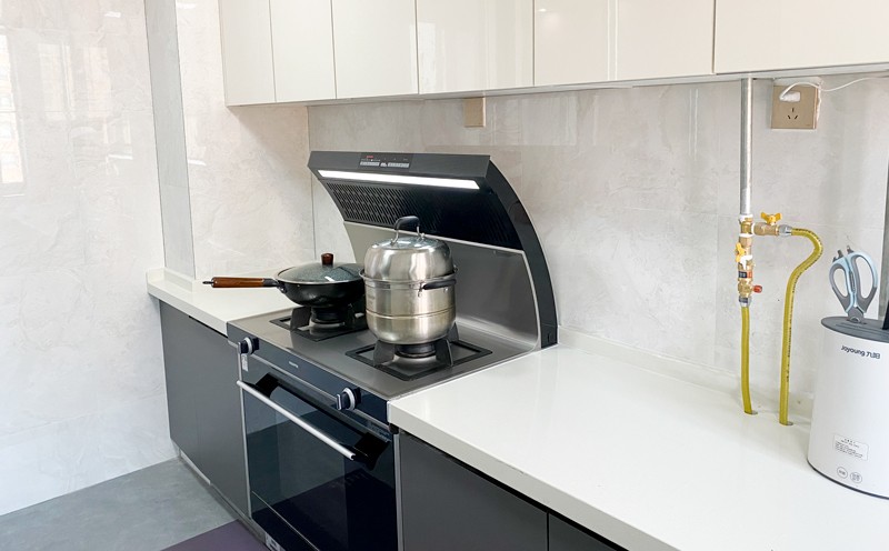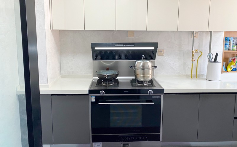說起當初,剛開始裝修廚房的時候,秦女士希望自己未來的廚房是干凈的,無油煙的。廚房面積不太大,她想著,要是廚電能合理布局,盡可能節(jié)省空間就好了。