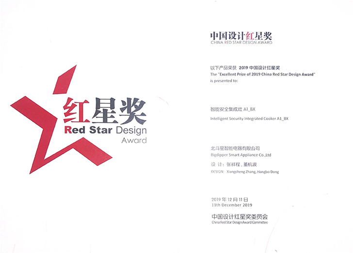 北斗星榮獲全球四大工業設計獎項之一的國際“G-Mark設計獎”,成為集成灶行業首個獲此殊榮的品牌,G-Mark素有“東方設計奧斯卡獎”之稱。