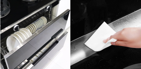 餐后清潔也很輕松,集成灶臺面通體是由一整塊鋼板制作而成的,無縫臺面一擦即凈,輕松快捷。收拾完廚房,還能對餐具進行全方位消毒,日常用餐更為衛(wèi)生健康。