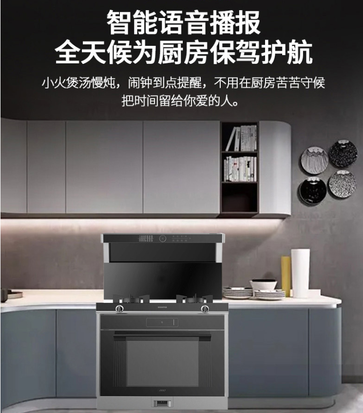 集成灶兼顧蒸烤功能,烤箱還能空氣炸。在炒菜的同時,集成灶的獨立式設計,蒸箱烤箱可以同步工作,高效快捷地完成一桌美食。