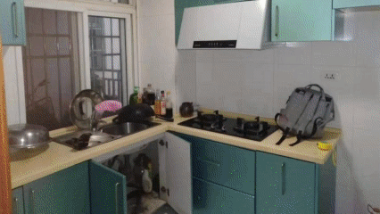 話不多說,我們先來看一下改造之前的廚房吧。老套的廚房搭配,綠色真的很老氣,瓷磚發(fā)黃發(fā)黑,油煙機陳舊損壞、裝修布局過時......這樣的廚房你還會有下廚的欲望嗎?