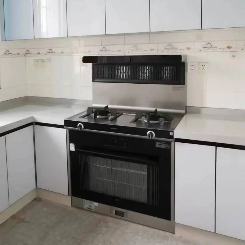 拆除完成后,就開始櫥柜和電器安裝了,電器選用的是“大師級真蒸烤”北斗星集成灶A5GZK。